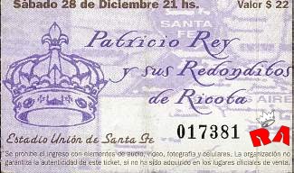 Entrada de la Misa del 26 de diciembre de 1996 en el Estadio de Union de Santa Fe firmado por el Indio.