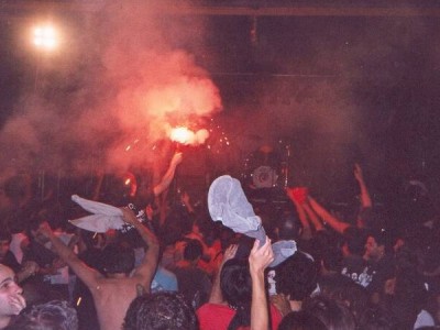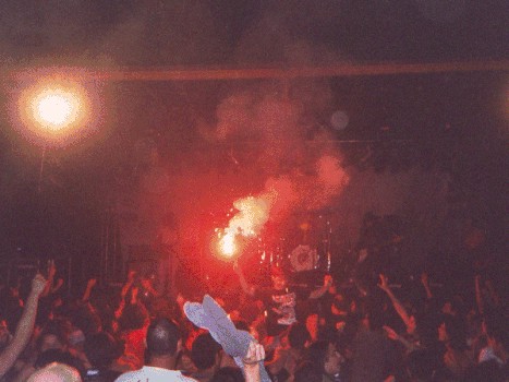 RA abre la noche de Galvez con su bengala en la Disco El Sitio el 14 de Diciembre de 2002.( Fotos La Web de Skay):