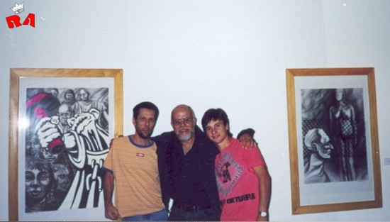 Durante la exposición en el Palacio de Hielo, Rocambole se retrató con Redonditos de Abajo en medio de todas las ilustraciones redondas.