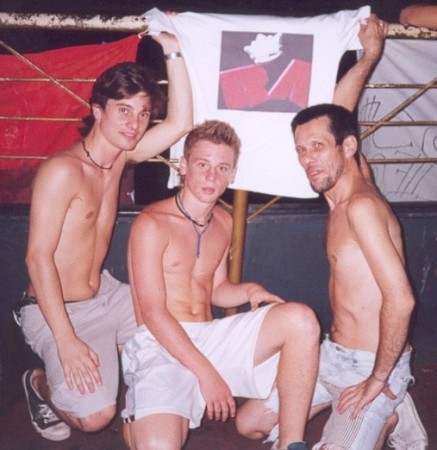 Redonditos de Abajo con su primer (y humilde) estandarte que flamea en los balcones del Teatro...